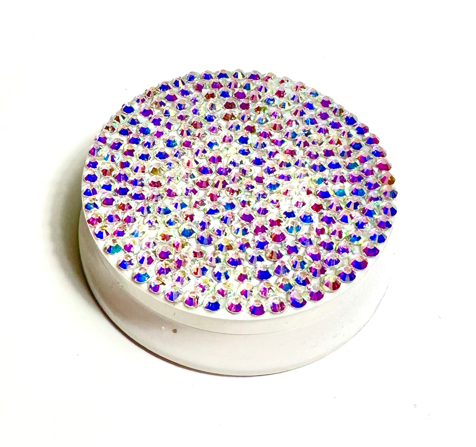 Fingertip moistener nonslip tool with an AB blinged Cap. The colors of the moistener varies as pink, lime and clear. This can be used to make it easier count money, paper and separate tissue paper