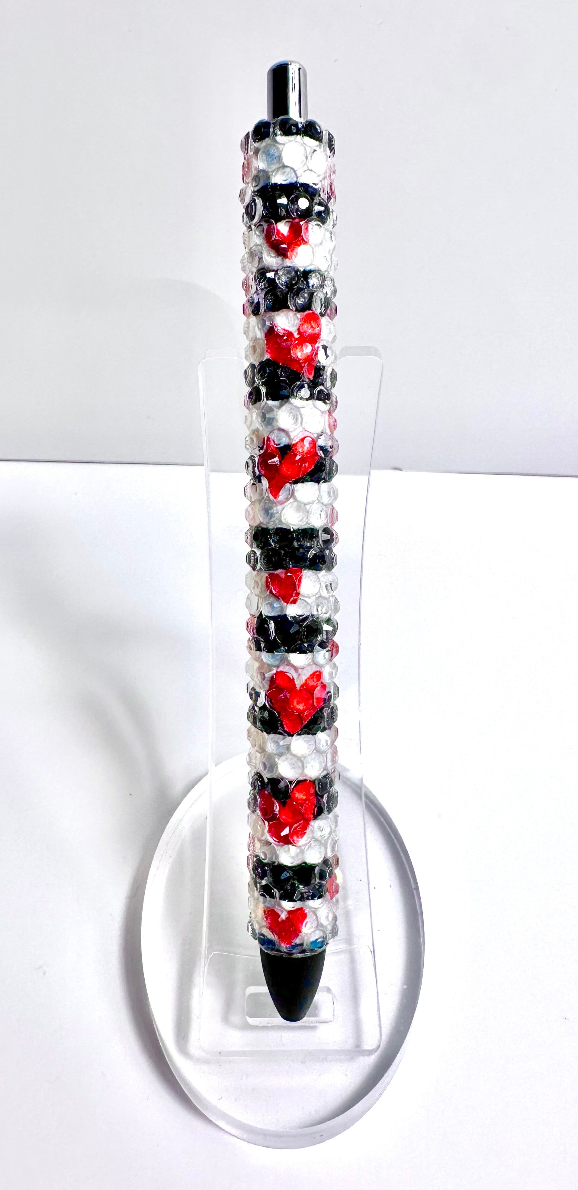Valentine’s Day Black and White Striped Red Hearts Rhinestone Pen inkjoy gel pen. 0.7mm black ink